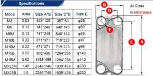 | Plate material | SS304, SS316L, Titanium, SMO254, Hastelloy C276 | ||||||